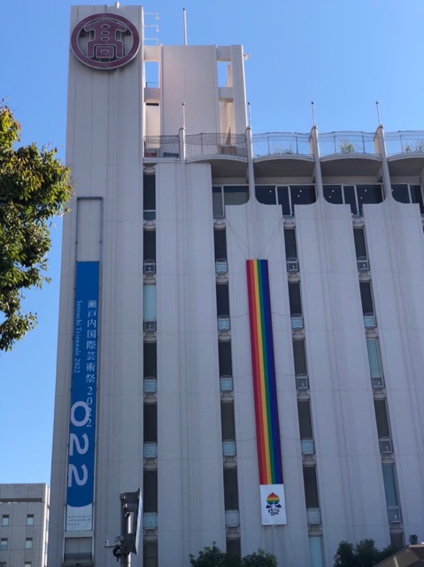 そこからしばらく真っ直ぐ歩き、終点の市役所に到着。なんと、市役所にもレインボーフラッグが掲げられていました。