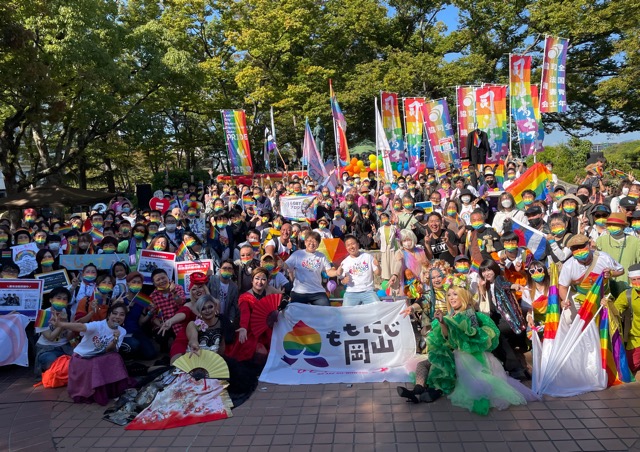 岡山では昨年、初のプライドパレード「ももたろう岡山虹の祭典(愛称:ももにじ)」が開催され、約300名が参加して盛り上がりを見せました。「ひとりじゃないよ」というメッセージを掲げたレインボーカラーのトラック「虹トラ岡山」の取組みも素晴らしかったです(レポートはこちら)