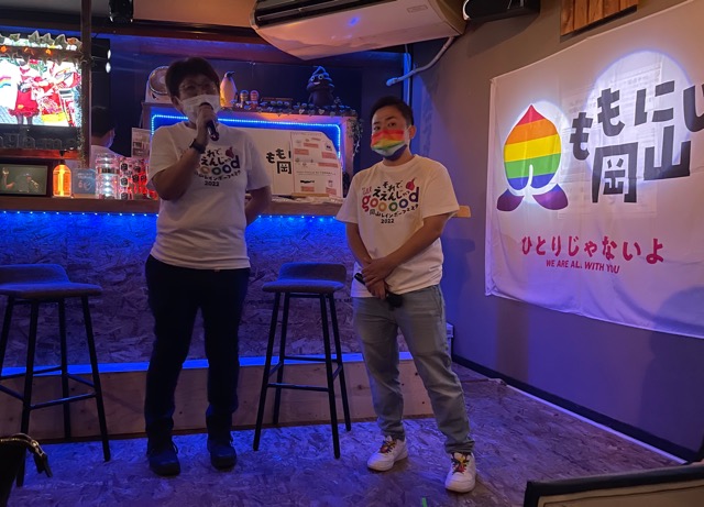 今回のメインのスポンサーである岡山で有名な不動産屋さんである良和ハウスの方からのご挨拶もありました。同性カップルでも問題なく入居できる物件を紹介してくださるというのはとても心強く、うれしい、と共同代表の市川さんも語っていました。