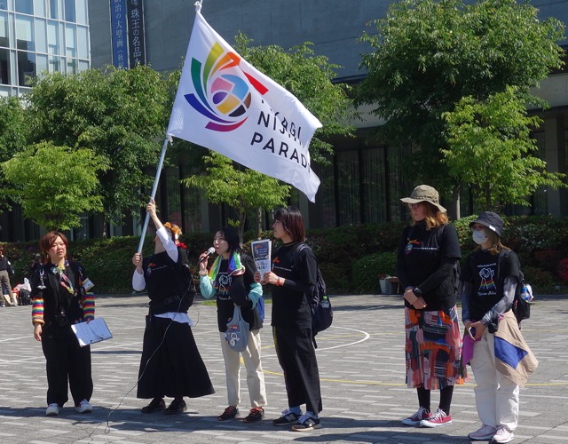 続いて、メディアの人たちの紹介、そして東北各地のプライドの主催者の方たちのスピーチが行なわれました。(いわてレインボーマーチは来週の土曜日(5月25日)、青森レインボーパレードは6月30日、庄内レインボーマーチは9月28日、ふくしまレインボーマーチは10月5日、やまがたカラフルパレードは11月3日、そして東北のパレードのトリを飾るみやぎレインボーパレードは11月16日だそうです)