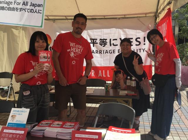 続いて「結婚の自由をすべての人に」九州訴訟原告のまさひろさん&こうすけさんカップルと鈴木弁護士、河口和也さんによる「結婚の平等にYES!」のトークが始まりました。お二人が原告になった経緯や福岡地裁、福岡高裁の判決の振り返り、全国の訴訟の状況などについて話されました。河口さんが打ち合わせになかった質問をお二人に振ったりして、ぶっちゃけた楽しいお話もありました。