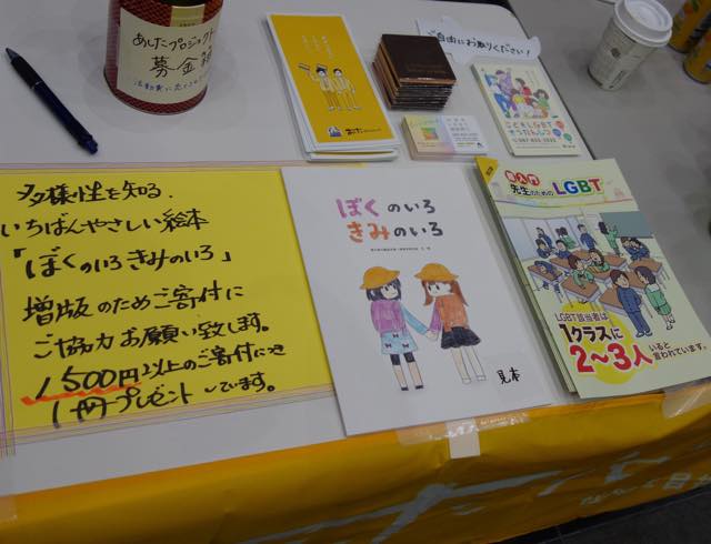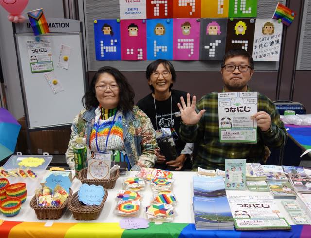 レインボーカラーに飾り付けられた会場には、いくつもの団体や企業のブースが出展され、県知事からのメッセージも展示されていたり、いろんなパンフレットやチラシが置かれていたり、Marriage For All Japanが展開する「国会議員に手紙を書こう」コーナーも設けられていたりしました。