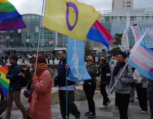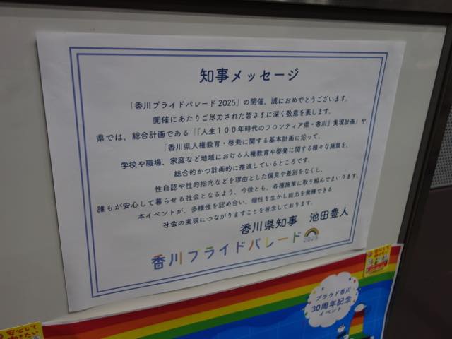 午前中に讃岐うどんを食べてから高松城のある玉藻公園や高松港の辺りを散策したのですが、そういう観光地にアート作品もとけこんでいたりして(瀬戸内芸術祭も開催されていました)、駅前にこんなに魅力的なスポットが集まっている街ってなかなかないなぁと思いました。そんな高松の街でプライドパレードが行なわれ、レインボーフラッグやいろんなフラッグが旗めいたこと、本当に素敵でした。美しいとさえ思いました。