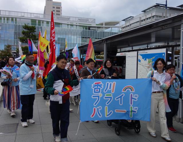 11月3日、高松で初となる香川プライドパレードが開催されました。シンボルタワー1階のホールで制服の問題や当事者の居場所作りをテーマとしたトークセッションが行なわれた後、高松駅前広場からパレードし、約120人が市内中心部を歩きました。レポートをお届けします