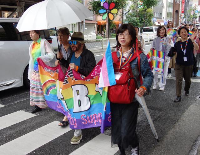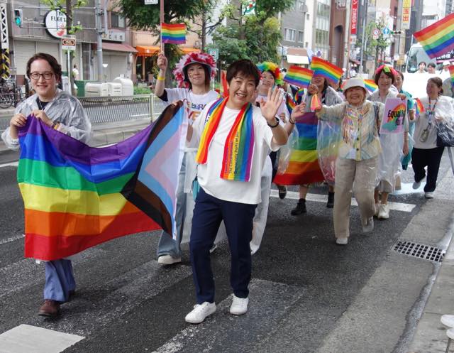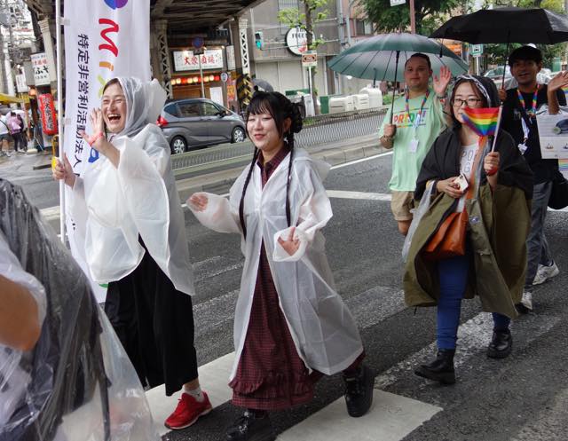 13時、まだポツポツと雨が降っているなかではありましたが、今年も関西レインボーパレードが意気揚々とスタートしました。いつもはカンテレ前で撮影するのですが、雨を避けて、少し天六のほうに歩き、JR環状線の高架下まで移動しました。雨にも負けないパレード参加者のみなさんの笑顔や「ハッピープライド!」のかけ声に元気をもらえた気がします。