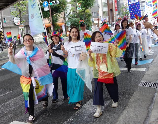 第4フロート「YELLOW」はチェリオが協賛。尾辻かな子さん、ハピネスお茶会やMarriage For All Japanなどの団体のみなさん、セールスフォース、IBM、AIG、アワーズ(アドベンチャーワールド)のみなさんなども歩いていました。