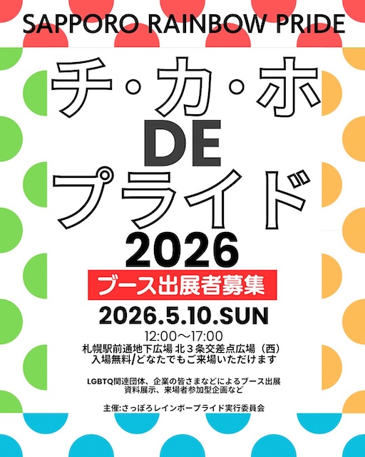 チ・カ・ホDEプライドは9月のさっぽろレインボープライドの前に、札幌駅と大通・すすきのを地下でつなぐ歩行空間の中に設けられた広場で行き交う市民に向けてパフォーマンスやライブ、アート展示、情報発信などを行なうプライドイベントとして2022年に始まりました。今年は札幌のプライドパレードが30周年の節目を迎える年ということで、札幌で活動してきた団体・企業・個人の歩みを共有し、つながりを深めようとの趣旨で、30年の歩みを振り返る写真・資料展示、北海道179市町村メッセージプロジェクト、札幌パレード歴史クイズ&ブーススタンプラリーなどが行なわれるそうです。
