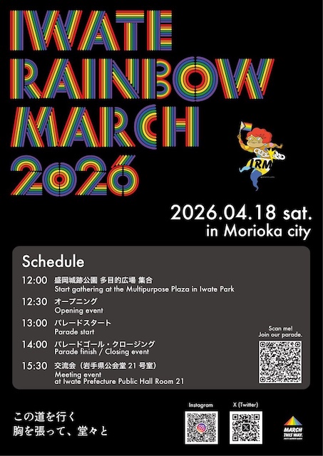 第13回青森レインボーパレードは2026年6月28日(日)に開催予定です! 昨年は初めて八戸市で開催しましたが、今年は再び青森市になります。詳細は3月に発表されるそうですので、続報をどうぞお楽しみに。2026年も、共に歩いていきましょう!
