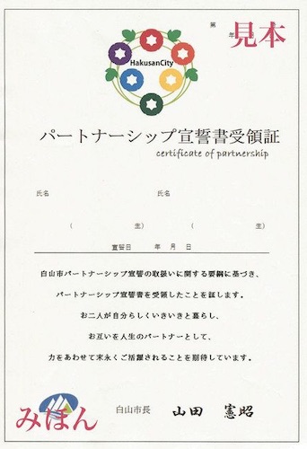 事前申請 きょうから 白山市パートナーシップ宣誓制度(中日新聞)