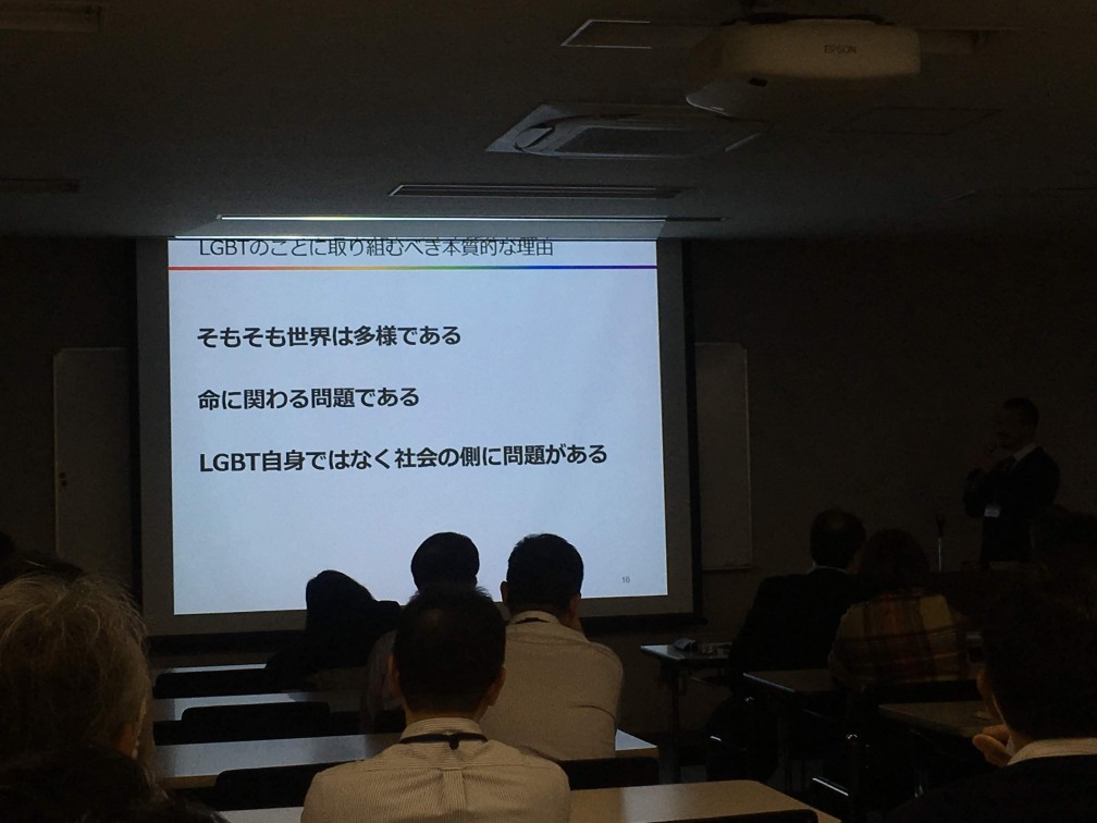 「LGBT基礎知識、企業がLGBT施策に取り組む理由」については、「職場のLGBT読本」の共著者でもあるアウト・ジャパンの後藤純一からお話をさせて頂きました。